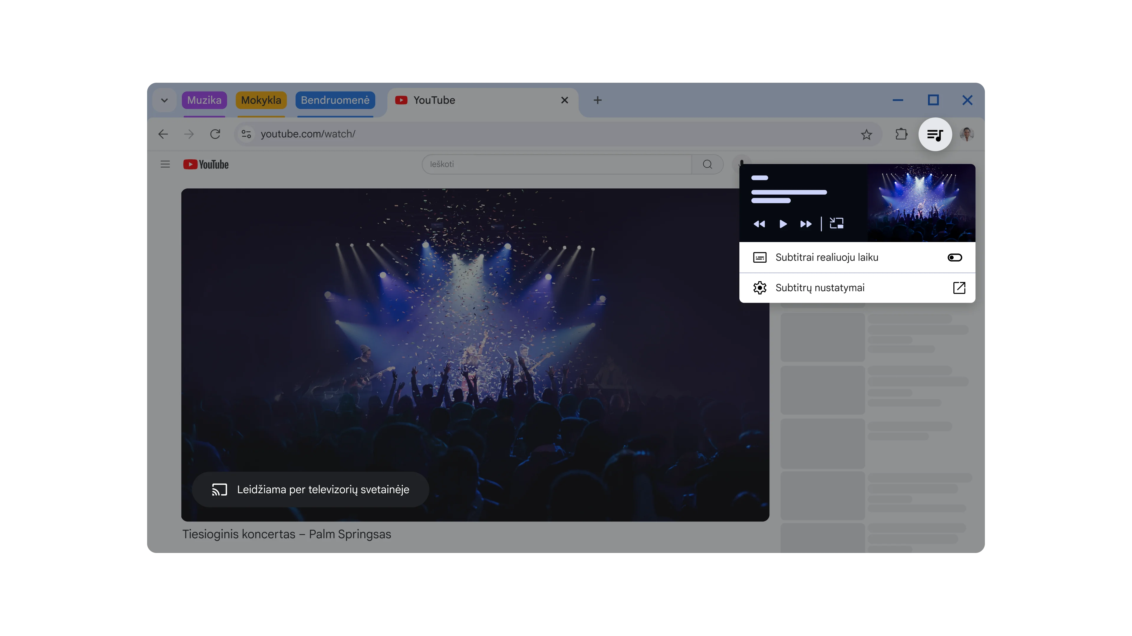 Naudodami „Chrome“ galite perduoti turinį iš kompiuterio ar telefono į TV su integruota „Google Cast“. Pasirinkite, ar norite perduoti visą ekraną, ar tik konkretų skirtuką.