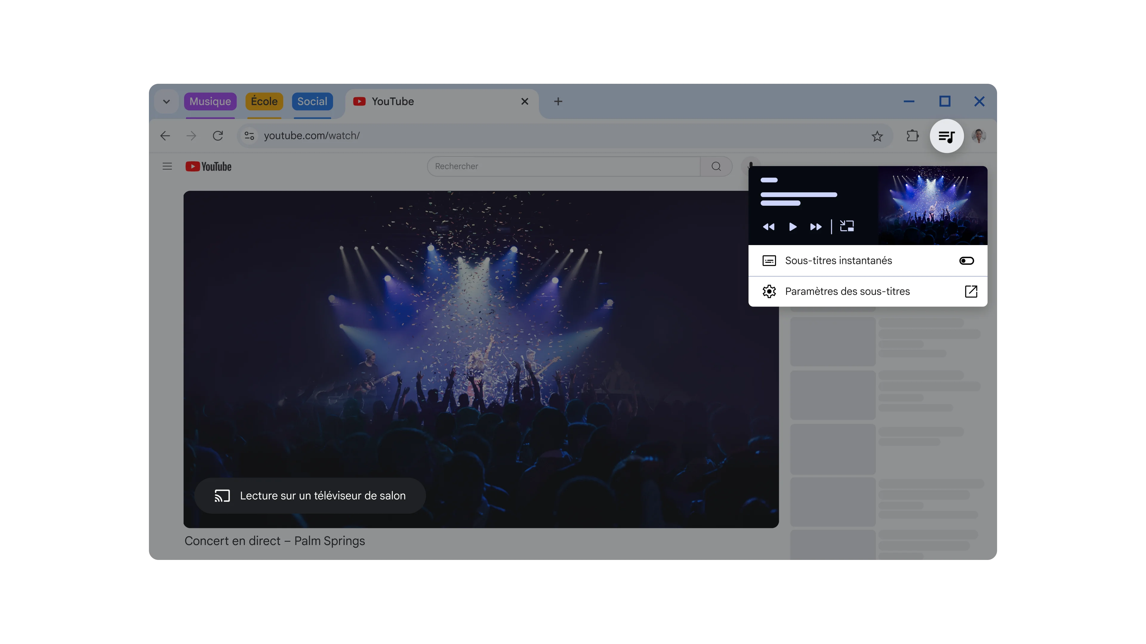 Avec Chrome, vous pouvez diffuser du contenu à partir de votre ordinateur ou de votre téléphone vers votre télé grâce à la technologie Google Cast intégrée.